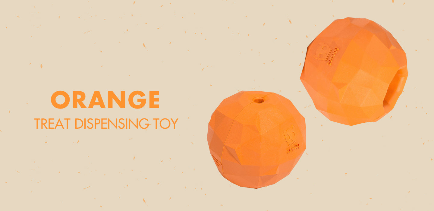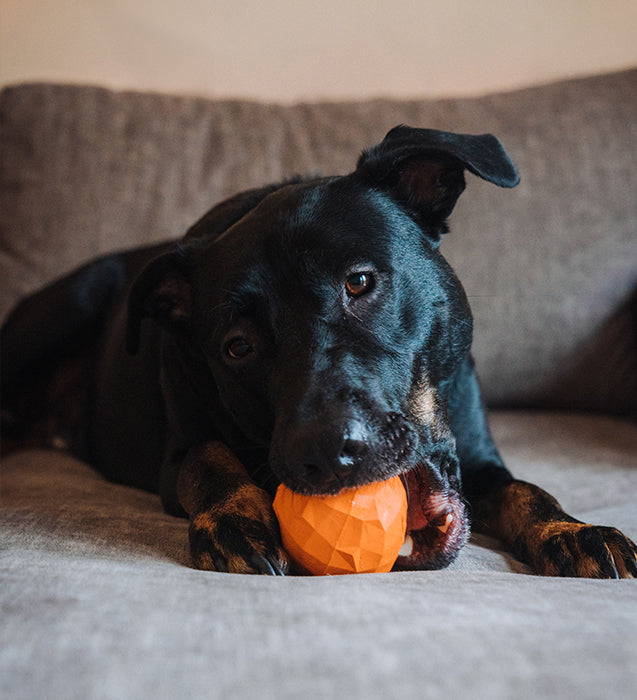 The Super Fruitz Orange brings a citrus-scented twist to playtime. Its erratic bounce adds excitement during interactive play, while the inner cavity holds treats your dog can enjoy on their own. Made from durable, non-toxic rubber with a textured surface and zesty scent, this treat dispensing dog toy is designed to keep dogs entertained and engaged, safely and naturally.