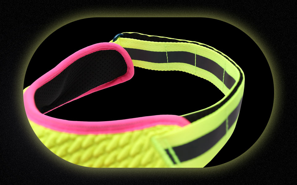 The highly reflective front strap ensures the harness is easily visible from all angles when illuminated, enhancing safety in low-light conditions.