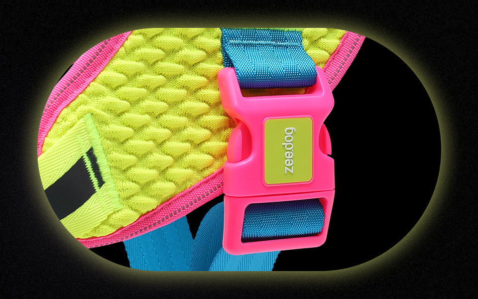Designed to stand out with its graphic color-blocking and easy one-click closure, the CMYK FlyHarness is made for dogs who walk with confidence—and color.