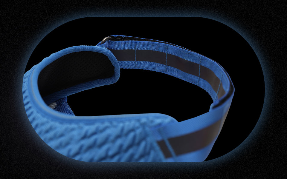 The highly reflective front strap ensures the harness is easily visible from all angles when illuminated, enhancing safety in low-light conditions.