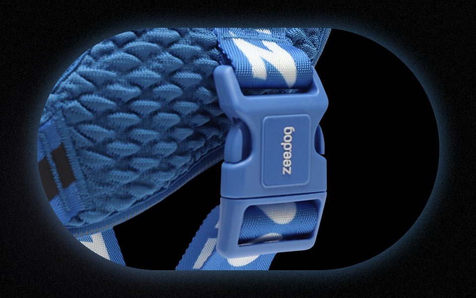 Once the FlyHarness is sized to your dog, taking the harness on/off becomes as simple as slipping the harness over their head, then securing the single buckle.