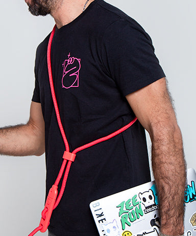 The versatile Neon Coral Hands-Free Leash can be used in 4 different ways. This hands free dog leash can be used as a waist leash and worn around your waist or as a crossbody leash- across your chest.
