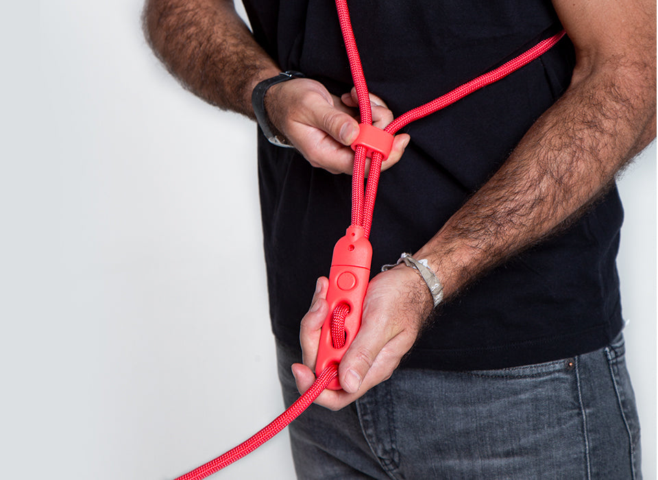 Move the slider to change how you use the leash - across your chest, around your waist or as a long leash