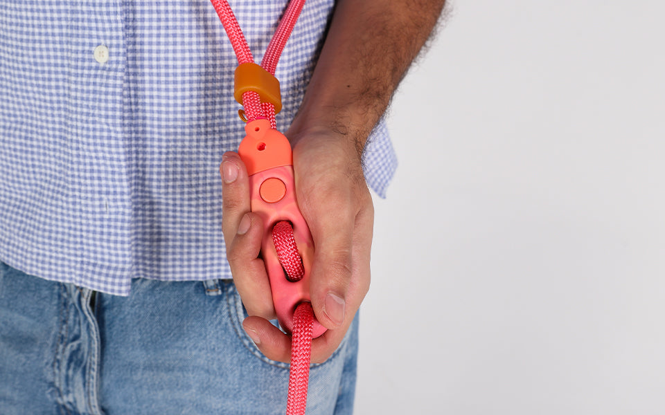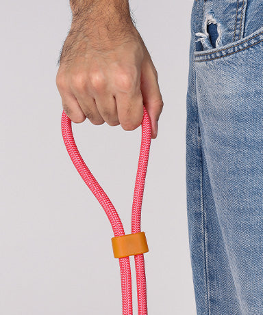 Move the slider to change how you use the leash - across your chest, around your waist or as a long leash