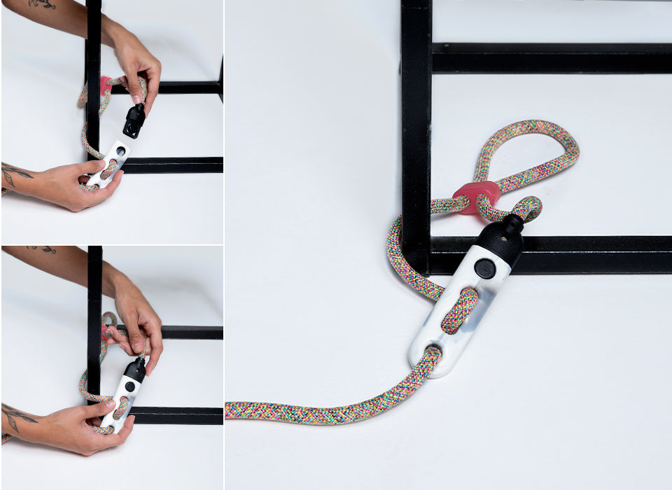 The E.Zee Lock allows for easy tethering to a park bench or table leg without having to remove the leash.