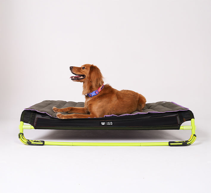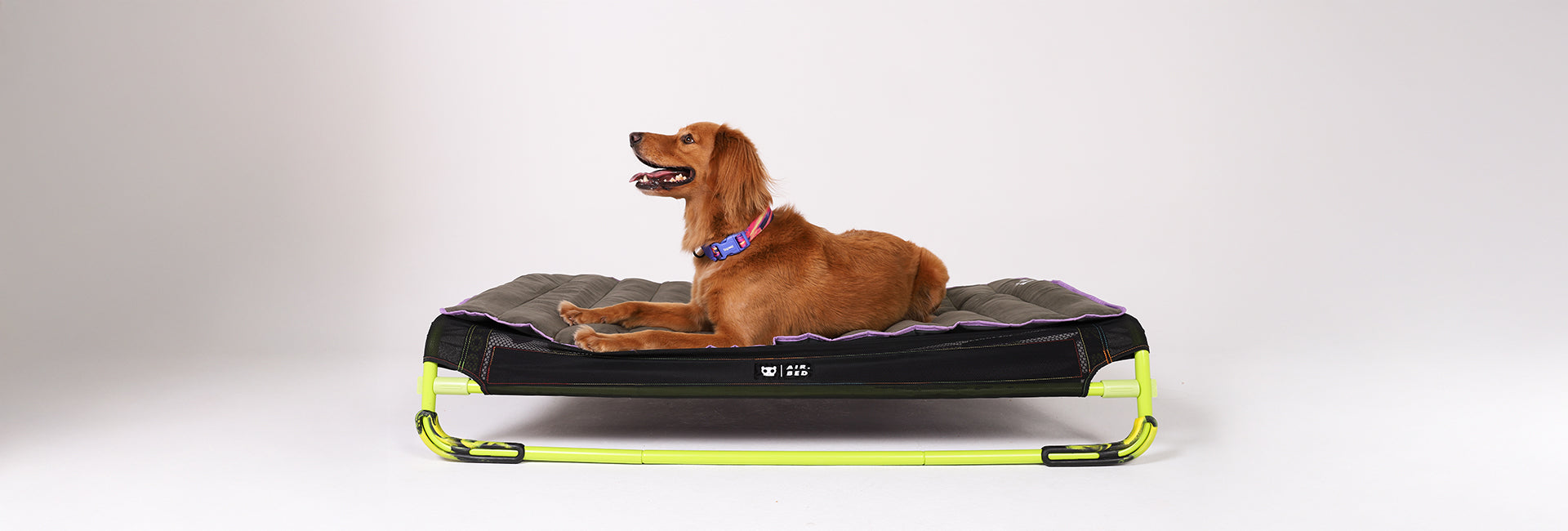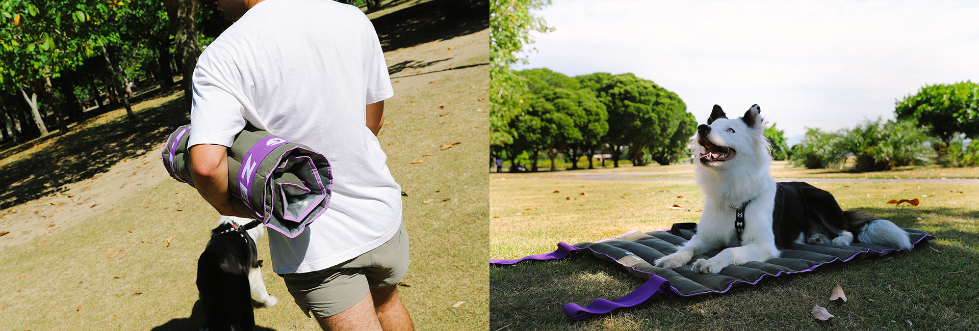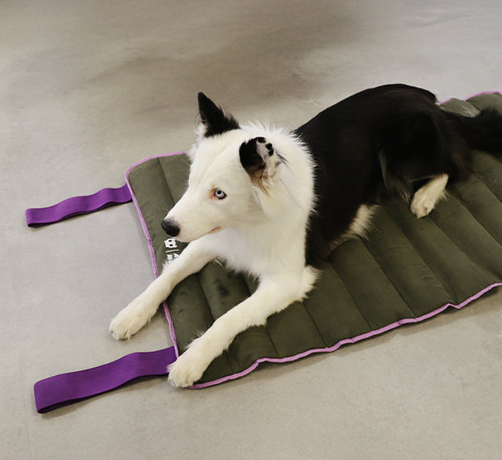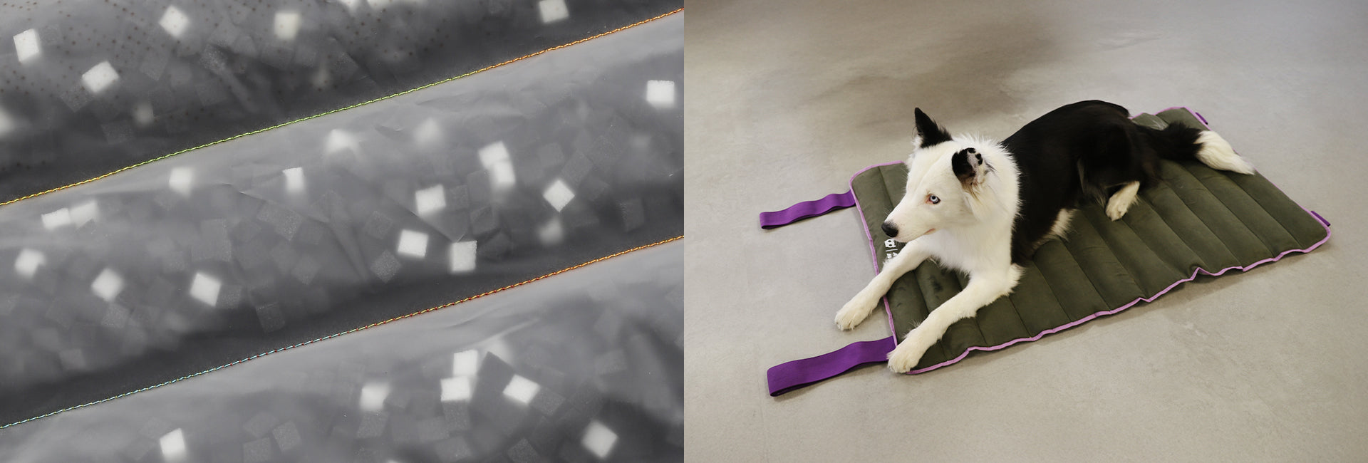 The Air.Mat is the perfect take-everywhere, lightweight travel pet mat. It rolls up easily and features elastic straps to keep it compact when not in use. The top surface is made of soft microfiber, providing a cozy and comfortable feel. The waterproof base makes it suitable for outdoor use, while its translucent design offers a sneak peek at the foam cubes inside.