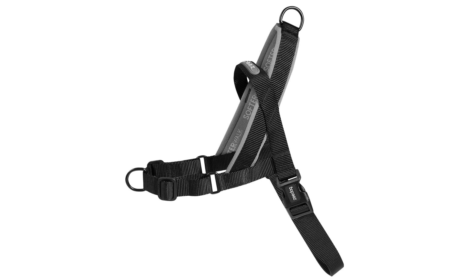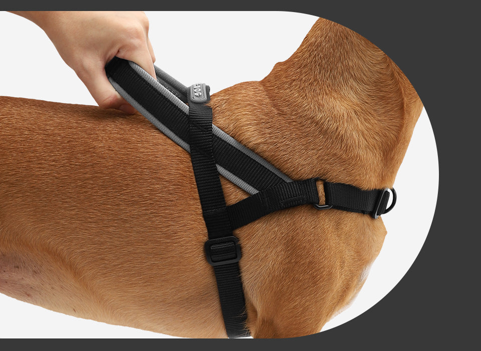 No-pull leash attachment ring that gently guides the dog to stop pulling.