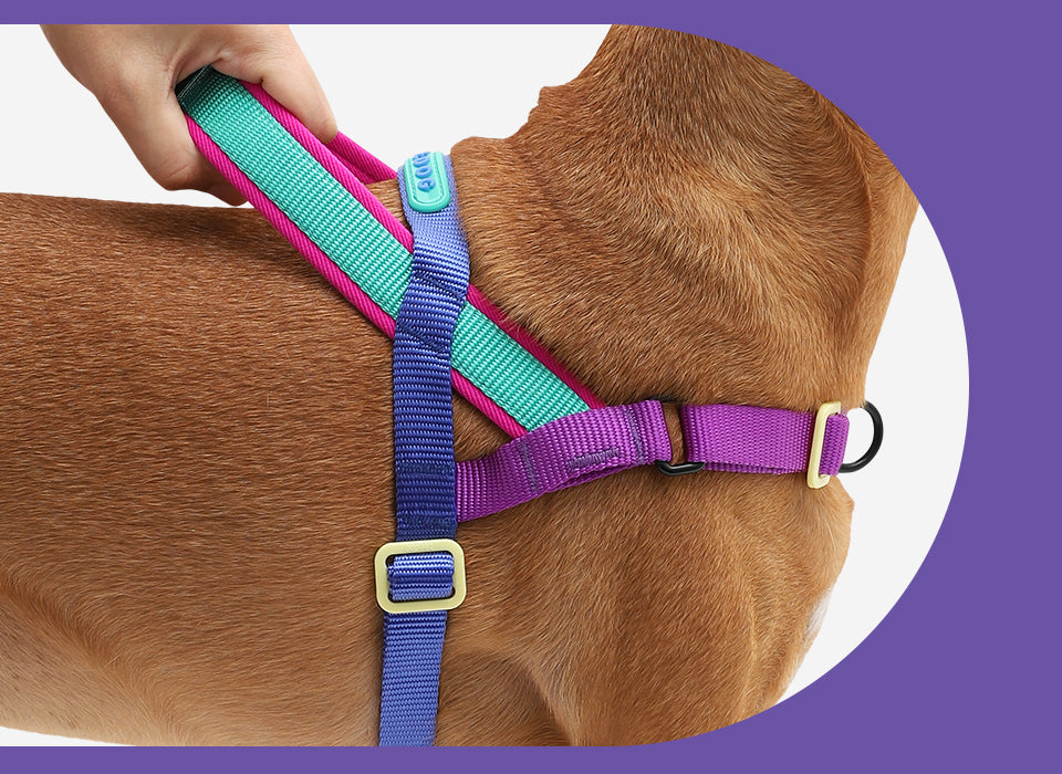No-pull leash attachment ring that gently guides the dog to stop pulling.