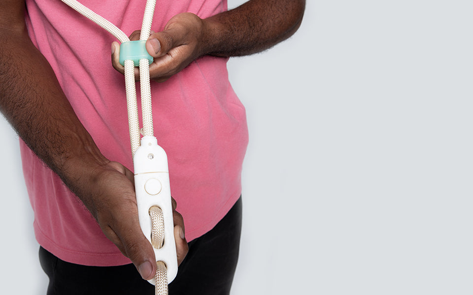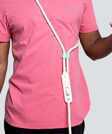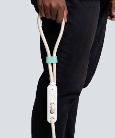 Move the slider to change how you use the leash - across your chest, around your waist or as a long leash
